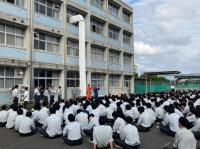 6月3日(火)、1年生を対象にした進路講話が行われ、株式会社さんぽうの水嶋さんを講師にお迎えしました。今回は、折り紙タワーづくりのワークショップを通して、働くうえで大切なことを学ぶ内容でした。