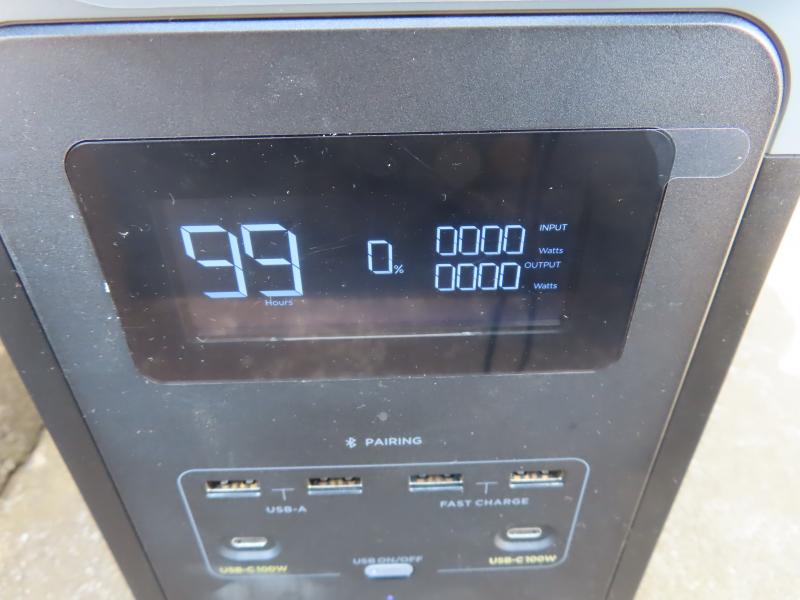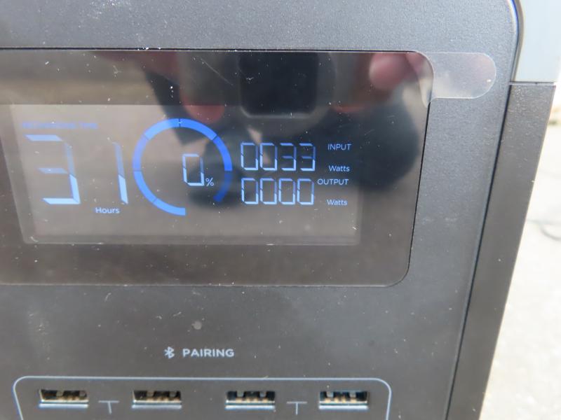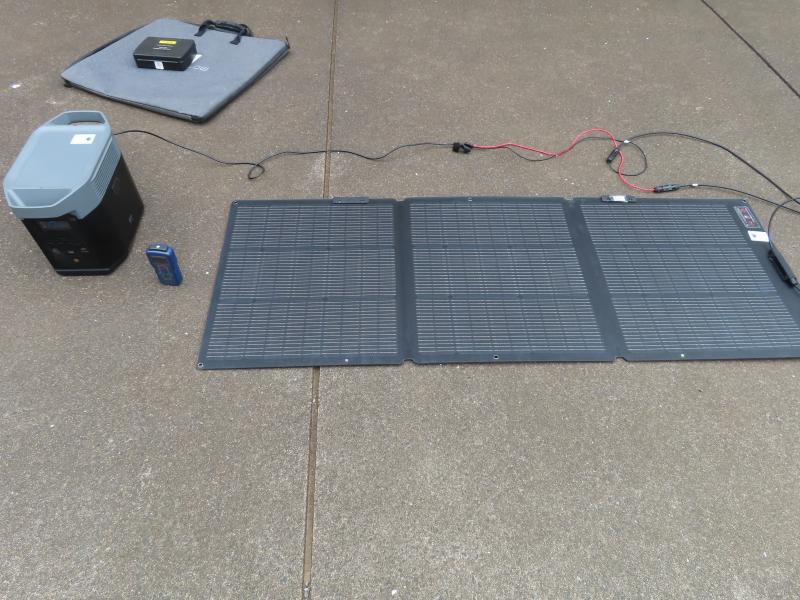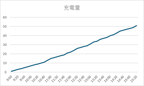 快晴で全天空日射量が安定ほぼ1000W/m2、ソーラーパネルより約110W充電