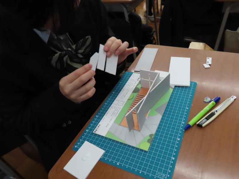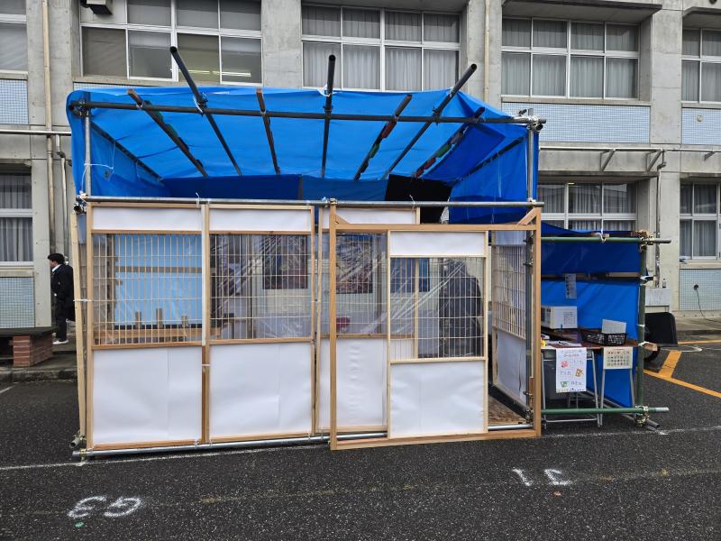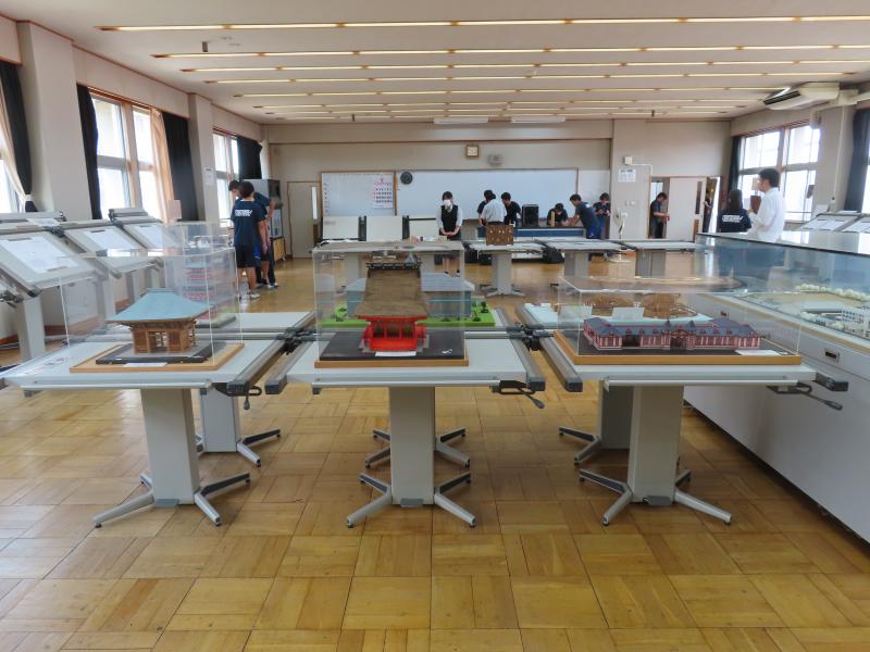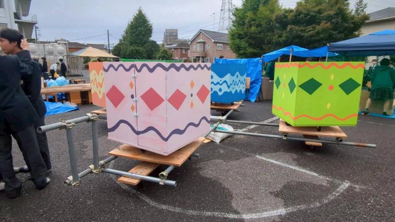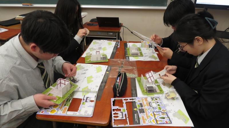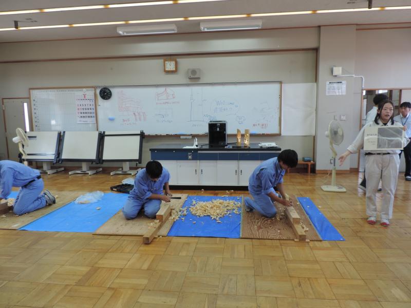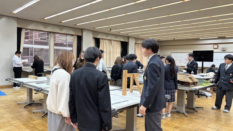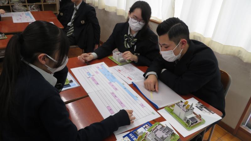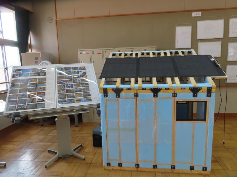 建築科3年生が課題研究でボルト取付式の避難所を設計しています。組み立て式の避難所キットを被災地域まで車で牽引して運び、現地で組み立てる計画です。