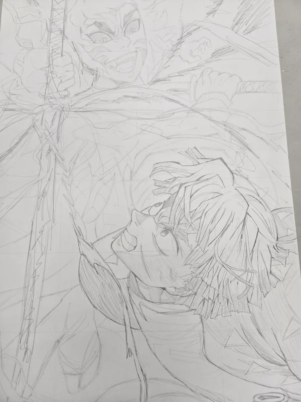 機器を使って建物の高さや角度を測量します。 2点透視図法の描き方を学習し、図面から建物の完成予想図を描きます。