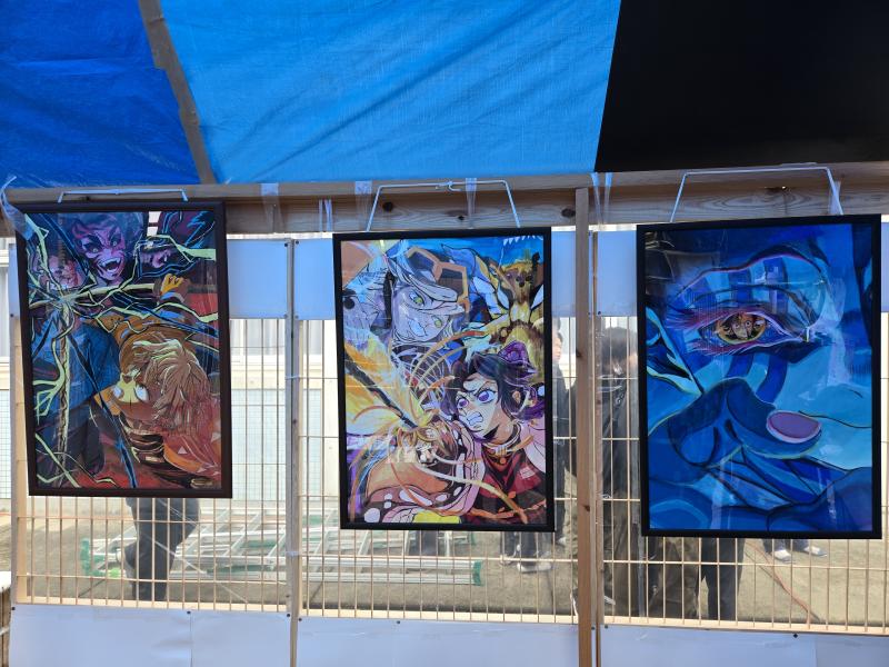 ビニール剥がし テプラで目印 取り付け中 6列目まで終了 別アングル