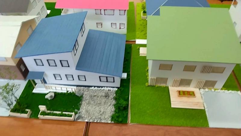住宅の骨組みに当たる部分の模型を制作します。 モルタルやコンクリートを型枠に入れて固め、
